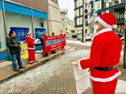 クリスマスイブの12月24日、函館の中心、本町交差点で10名で署名宣伝行動を行いました。30分の行動で23人の方が署名に協力してくれました。