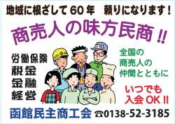 お問い合わせは、函館各界連事務局・0138-52-3185(函館民商内)までお寄せください。