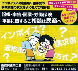 また、『函館民主商工会』では、7月25日午後2時〜午後7時に亀田交流プラザ3階会議室で「コロナウイルス対策支援相談会」(要予約)を開催します。営業全般どんなことでも相談に応じます。